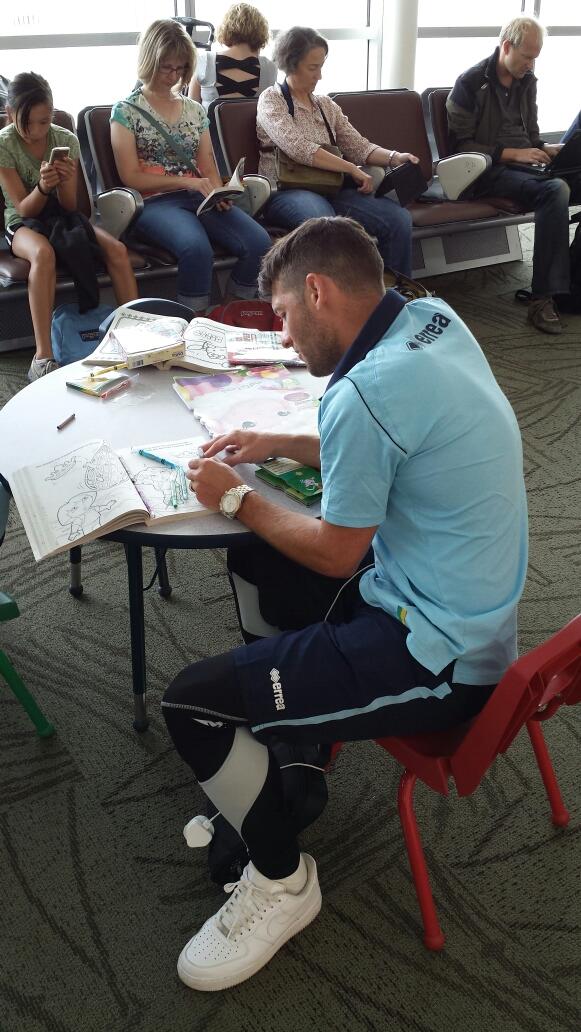 Doing his Geography homework in a bus station